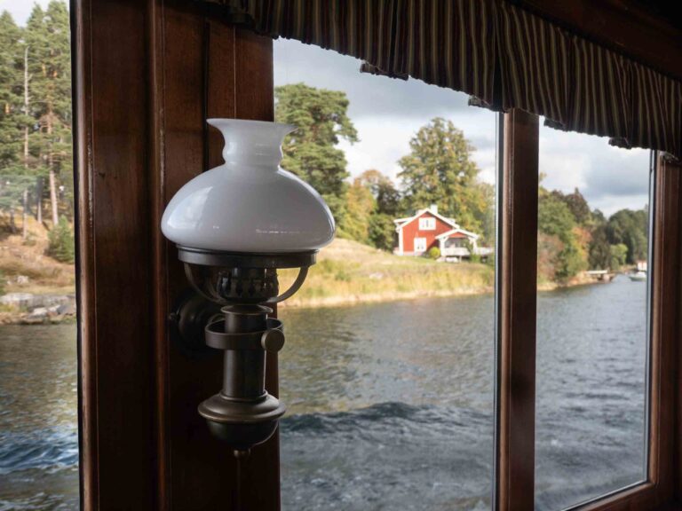 Die Archipelago-Tour findet in den Wintermonaten ebenso statt, je später im Jahr es allerdings ist, desto weniger Fahrten gibt es. Im November und Dezember beispielsweise nur an den Wochenenden (Stand: 2025). Die Touren sind unterschiedlich lang, wir hatten uns natürlich für die längste Option entschieden: 3 Stunden und rund 36 Euro pro Person, um bis nach Vaxholm, der Hauptstadt der Schären zu fahren und möglichst viele Inseln und Häuschen zu sehen. Das Schiff an sich war wirklich hübsch und seine Geschichte war Teil der Tour, die Erklärungen auf Englisch und Schwedisch mit Live-Guide waren interessant, zwischendurch gab es auch einige ruhige Phasen, um einfach aufs Grün und Blau zu schauen. Ausblicke, wie man sich Schweden vorstellt. Rote und gelbe Häuschen, weiße Fensterrahmen, grüne Weite. Immer wieder größere, runde Felsen, blauer Himmel mit ein paar wenigen Wolken. Wirklich traumhaft!