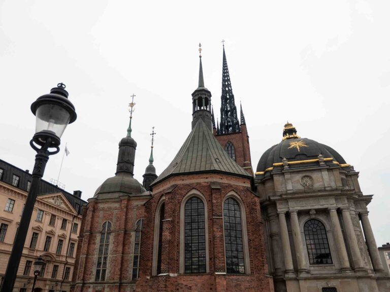 Am zweiten Tag wollten wir etwas tiefer in die Geschichte eintauchen und den Blick schärfen für Details, wie die Feuer-Plaketten oder versteckte Runensteine. Solche und andere Besonderheiten lassen sich immer super mit einer Free Walking Tour entdecken. Wir hatten uns für Nordic Freedom Tours entschieden, die viermal täglich eine englischsprachige Tour durch die Altstadt anbieten. Diese dauern rund zwei Stunden und fokussieren sich auf die Geschichte der Stadt, enthalten aber auch witzige Informationsschnipsel, wie den hohen Pro-Kopf-Kaffee-Konsum in Schweden. Teil der Strecke sind die Riddarholm-Kirche, der Iron Boy (die kleinste und eine der bekanntesten Skulpturen der Stadt) sowie die charmanten Plätze Mynttorget und Brända Tomten, der deutsche Brunnen und mehrere Kirchen sowie das Nobelpreis-Museum. Der Platz direkt vor dem Museum, namens Stortorget, ist einer der bekanntesten Fotospots: Hier stehen die hohen, bunten Häuser und das alte Rathausgebäude. Die Tour endet nahe des Königspalastes, von wo sich ein grandioser Blick aufs Wasser bietet.